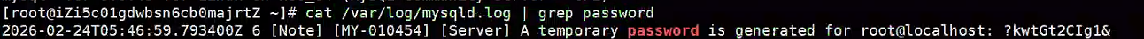 - 按前面第四点,查临时密码,登录mysql后,再重置数据库密码