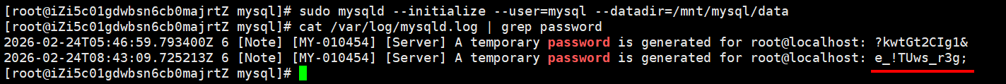 sudo mysqld --initialize --user=mysql --datadir=/data/mysql