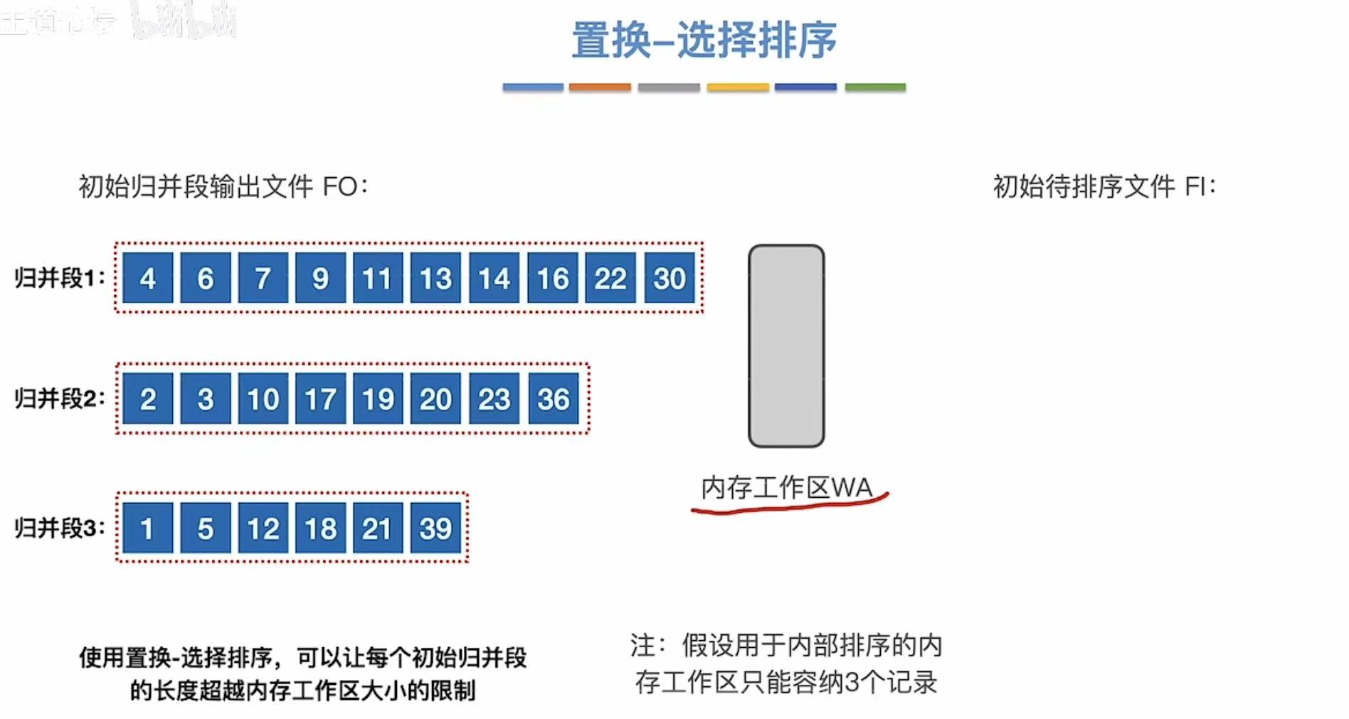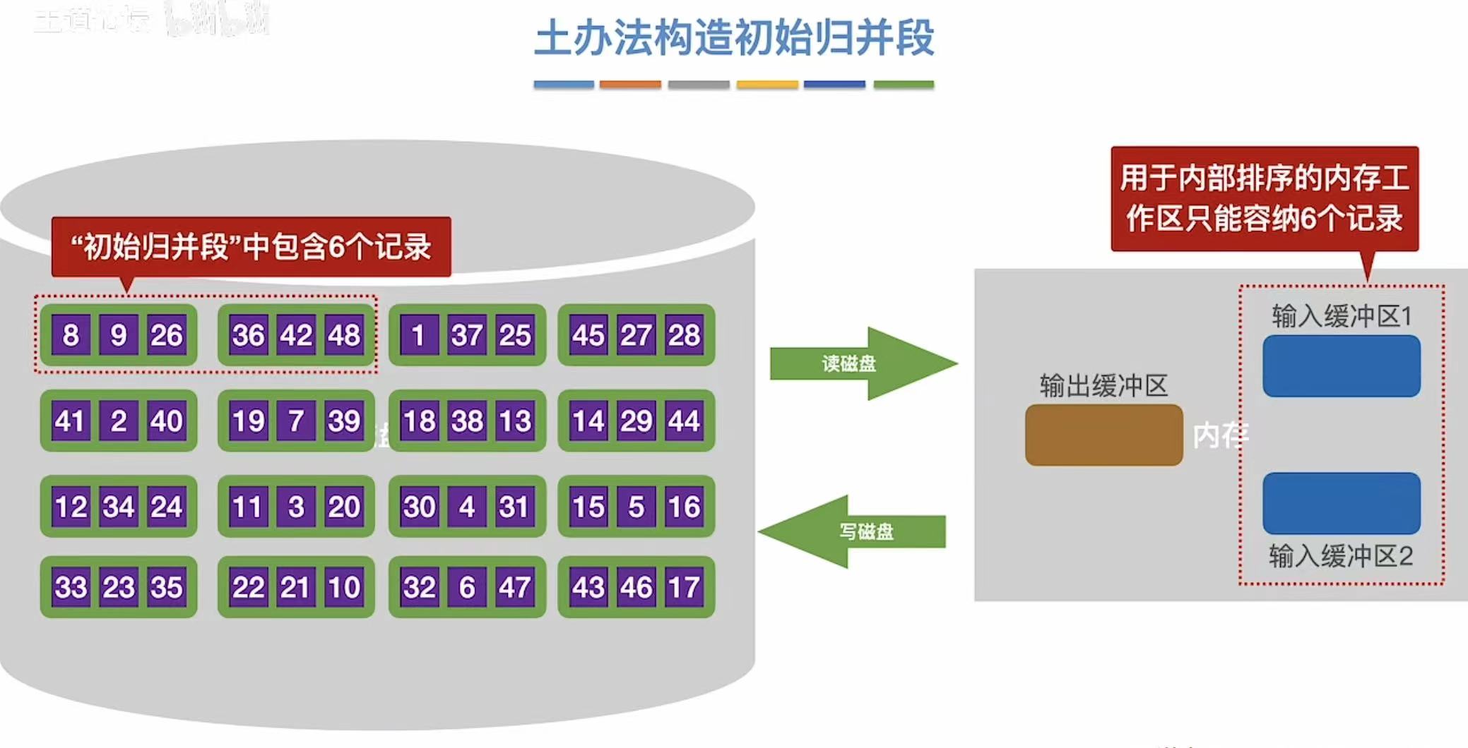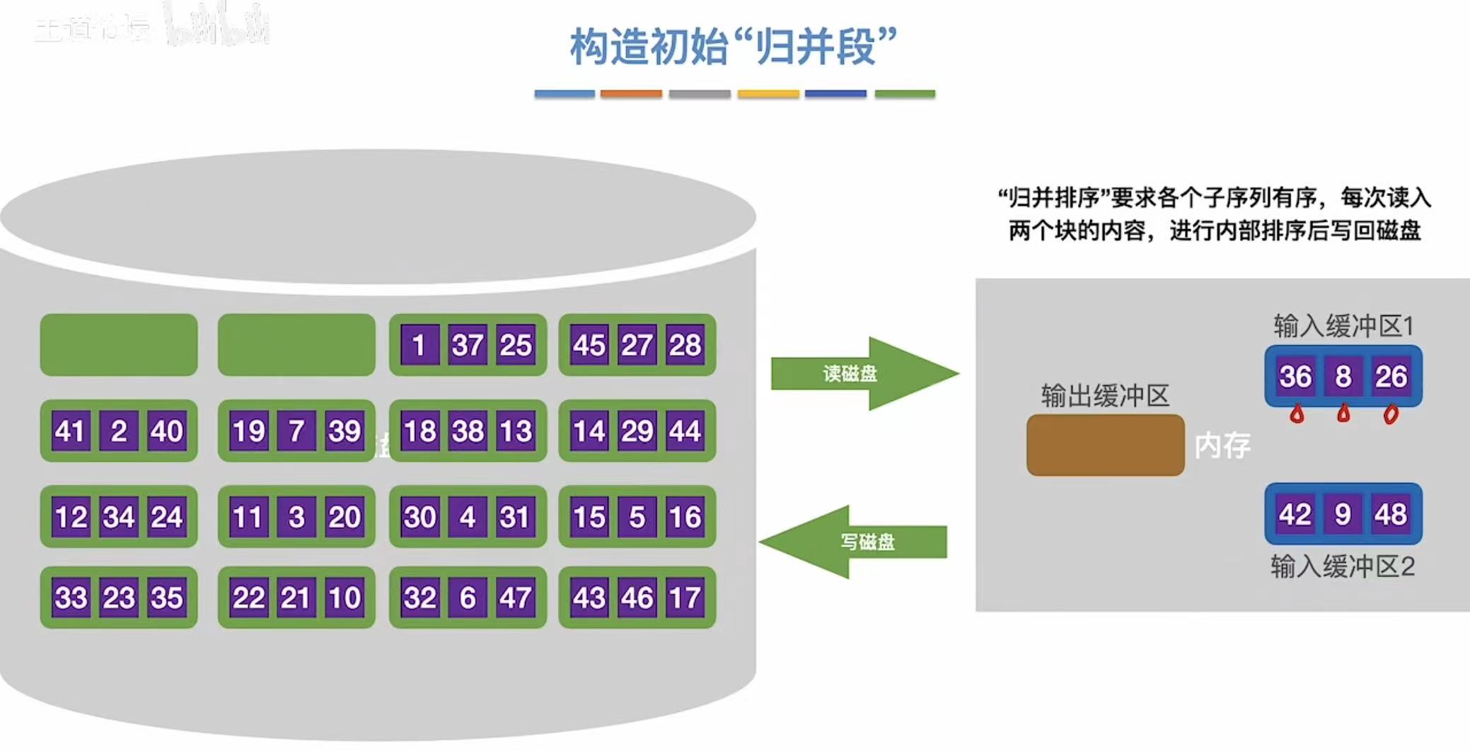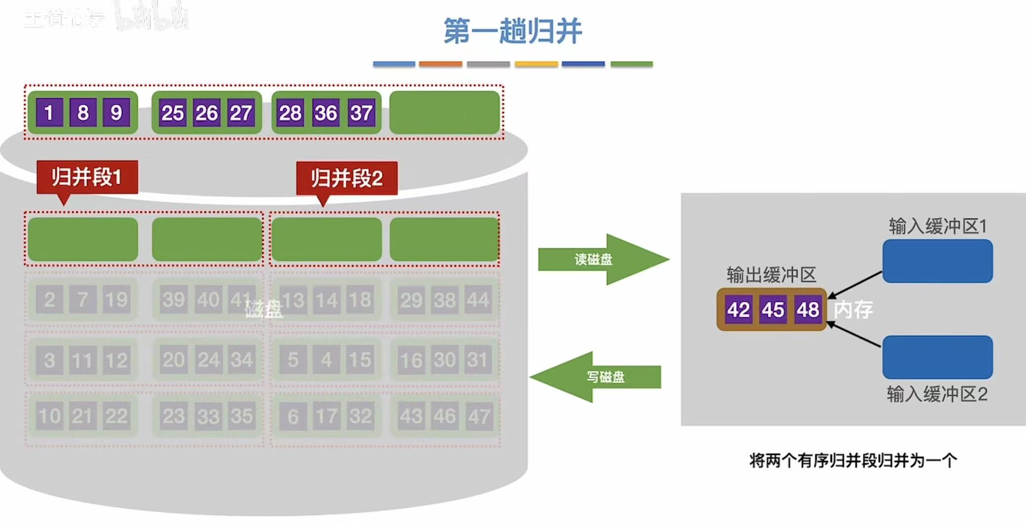 逻辑 :外存-->读出数据-->内存-->在内存有序排列数据(比如一个块三个数据632排成236)-->写回外存