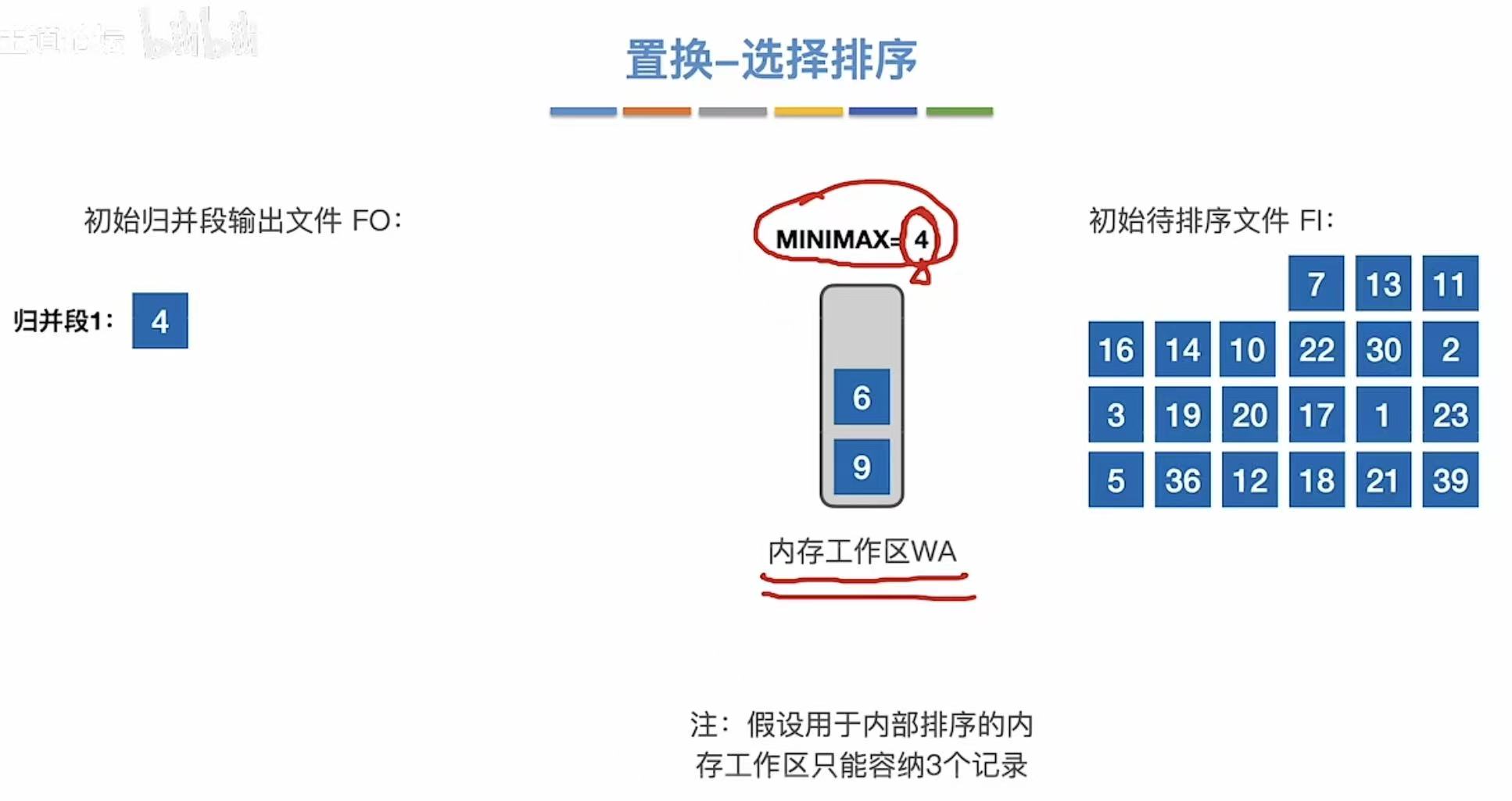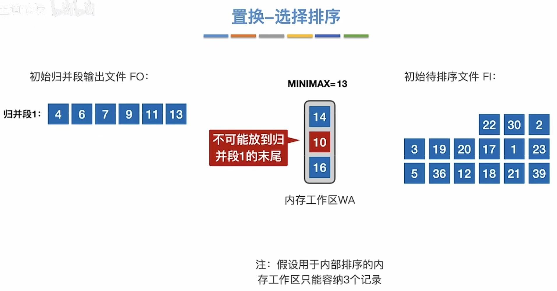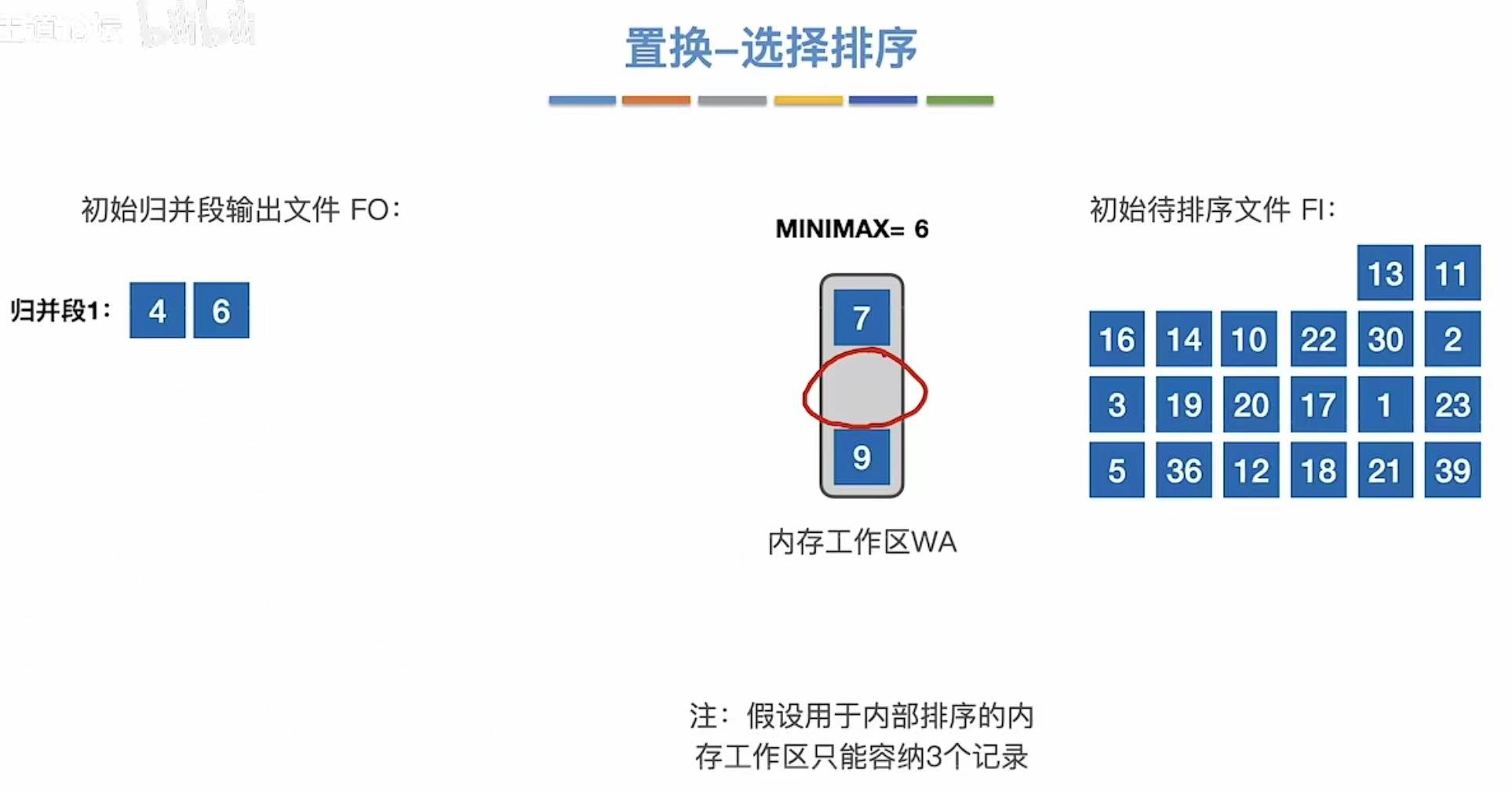 - 6<17,17留,6上,所以结点是6所在的归并段3;
