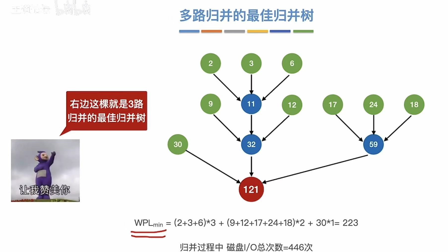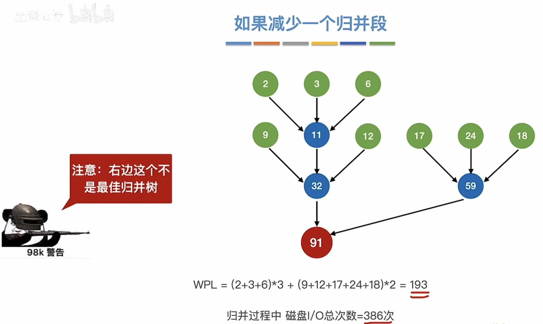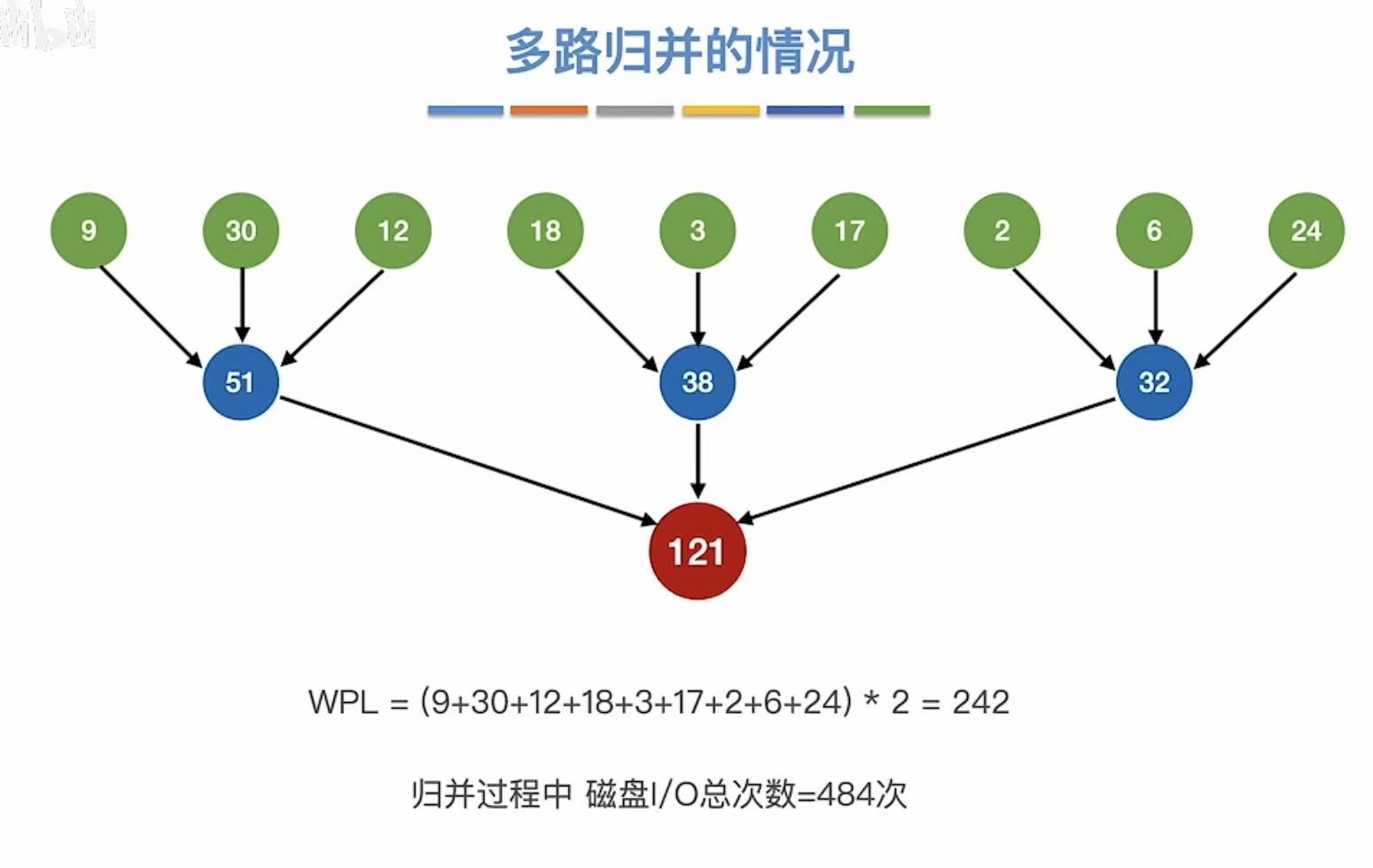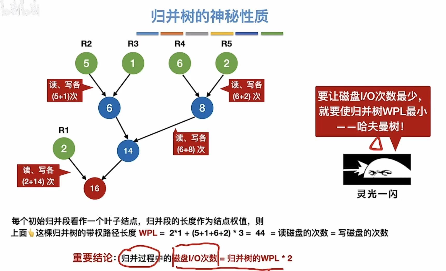 归并过程中的磁盘读写次数=归并树的WPL*2