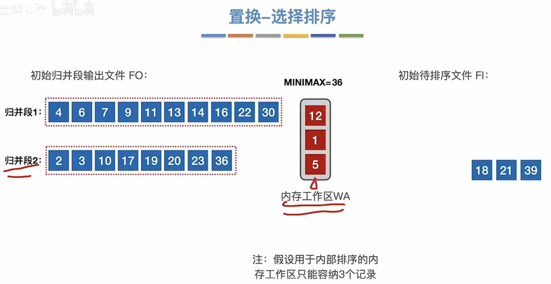 - 12>6,12留,6上,所以结点是6所在的归并段3;