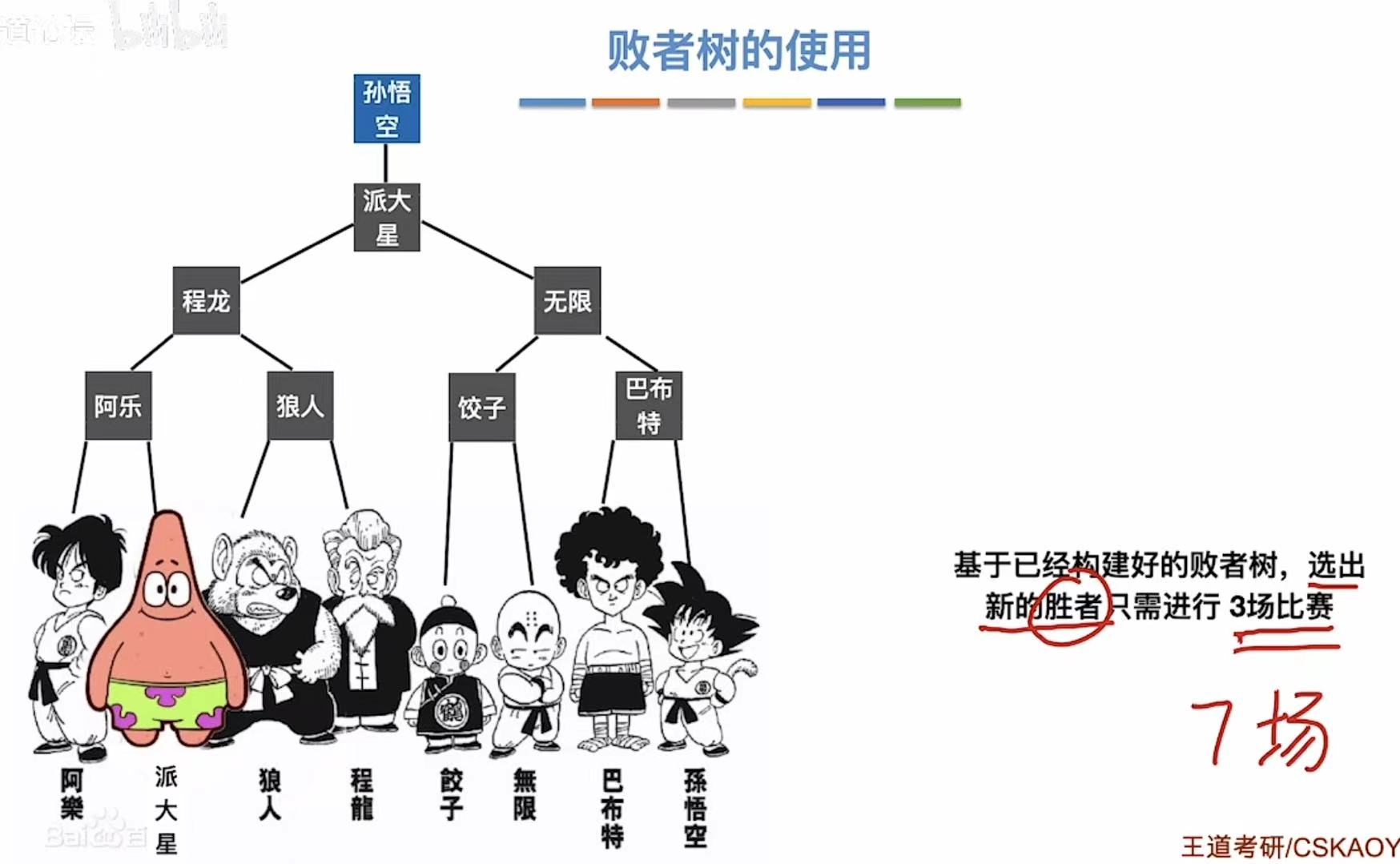 所以再需要接着比赛选出最小的冠军,就只需要踩着前人的脚印,继续向上比拼。