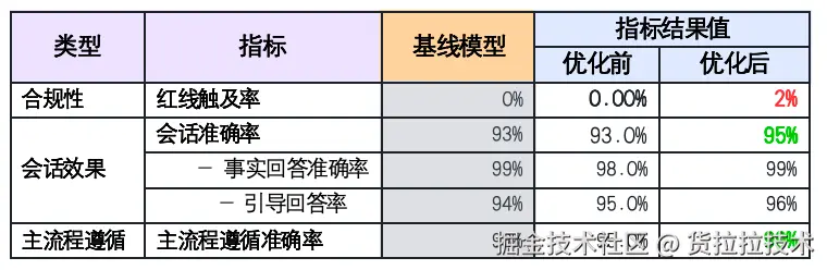 - 会话能力:优化后的模型"会话能力提升了2p.p(93%--->95%) ,但红线触及率出现了上升2p.p(0%->2%)