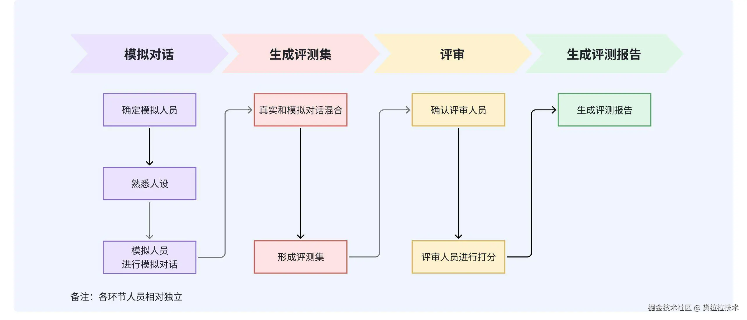 货拉拉x场景评测方案流程图,展示从模拟邀约数据提取数据到生成评测报告的整个对话评测流程