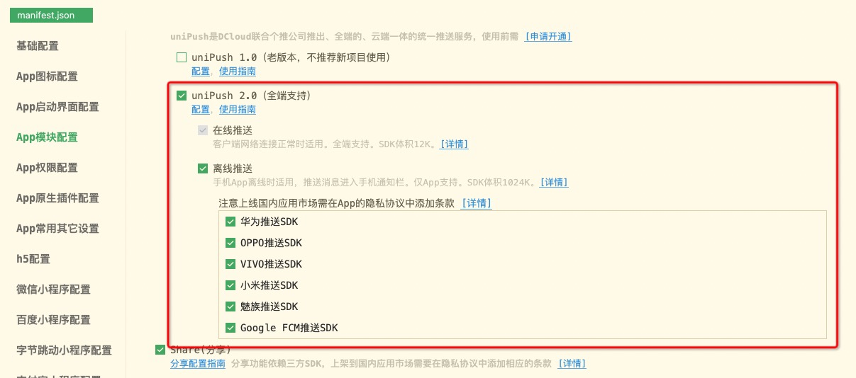 参考网址https://uniapp.dcloud.net.cn/unipush_vendor_config.html