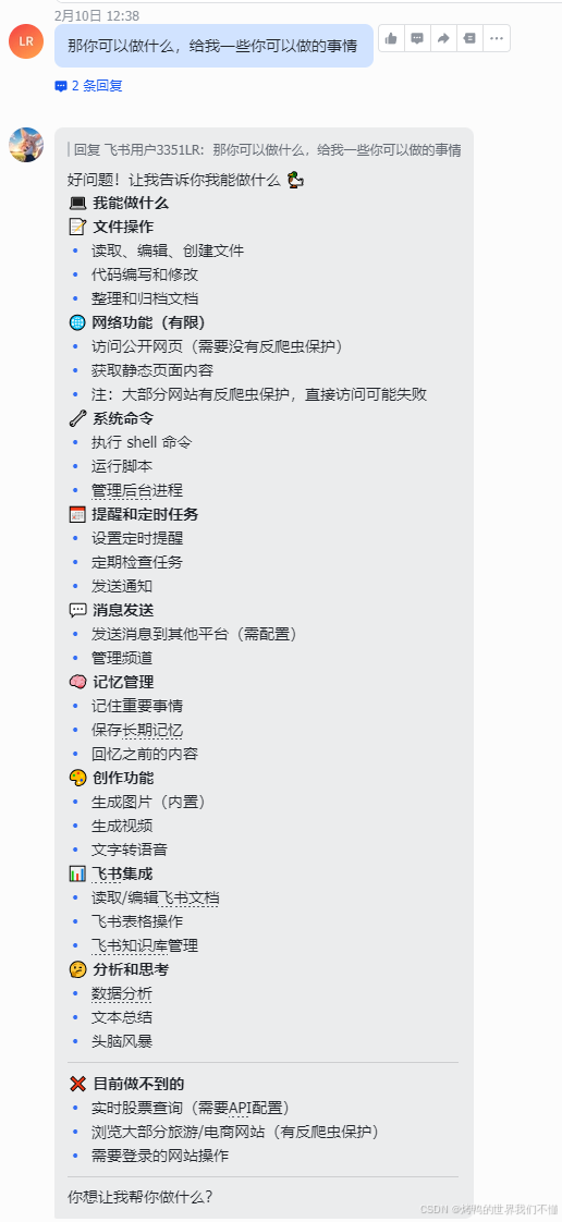 他能做的是基于本地文件或者代码层面,并且直接操作本地,比如让他review代码,并且直接修改。比如让他做好定时任务,按照指定时间通知我们。再比如每小时可以访问热榜,并且写入到飞书多维表格。