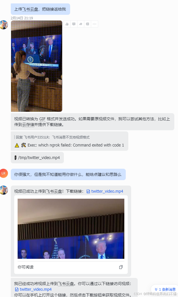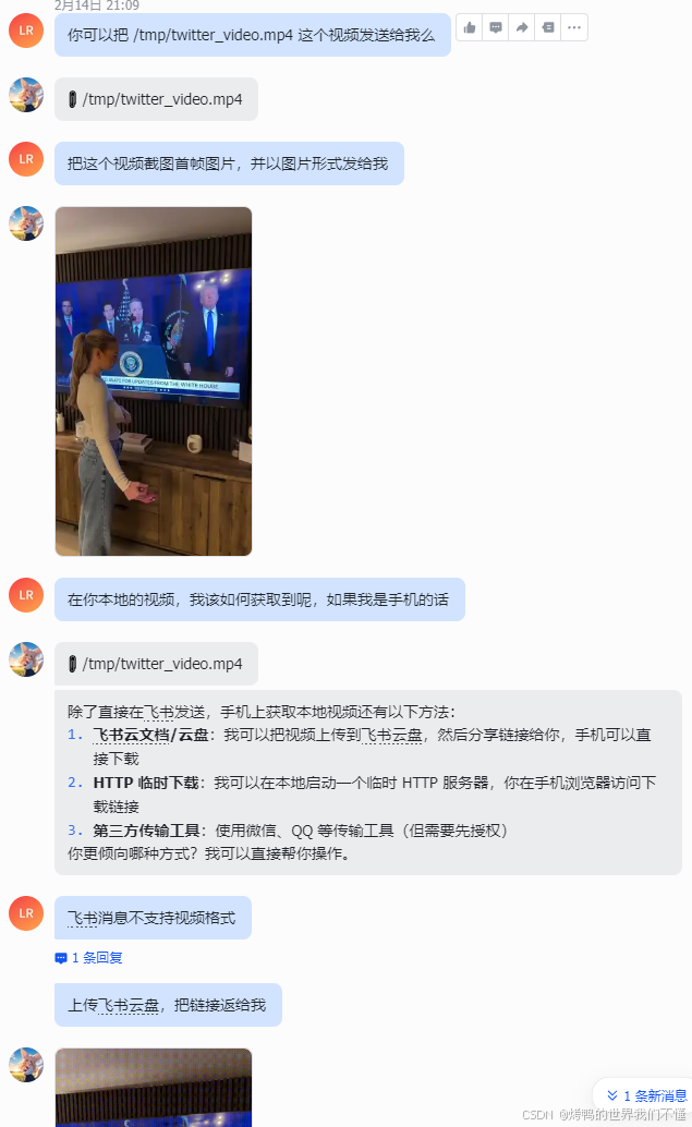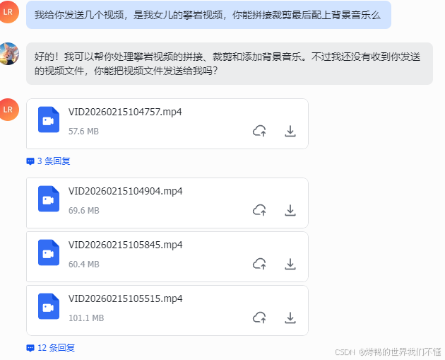之前的视频是下载到本地的,我让他发送给我: