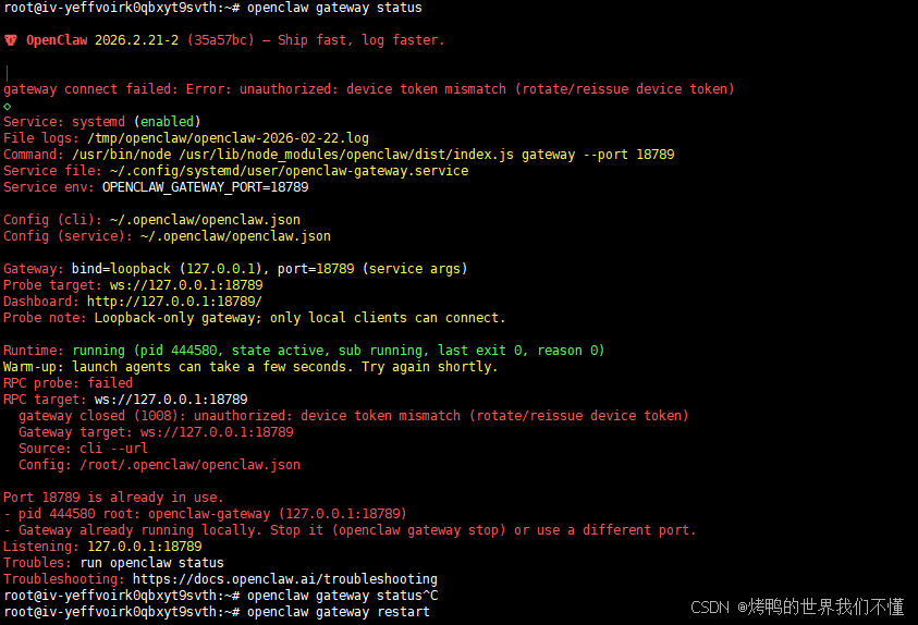 gateway connect failed: Error: unauthorized: device token mismatch (rotate/reissue device token)