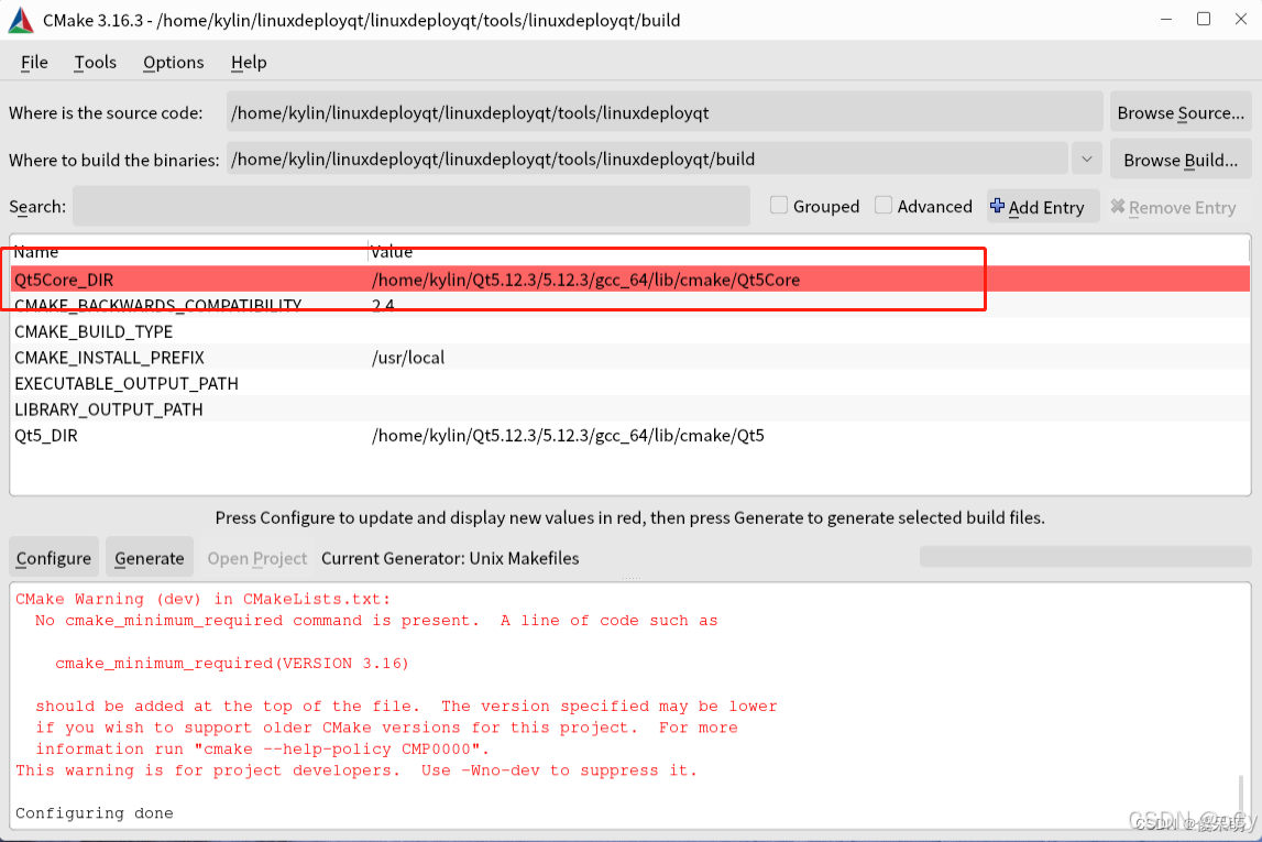 选择默认的Unix Makefiles 生成方式