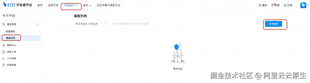 a. 访问卡片平台 [ 8] ,点击新建模板。