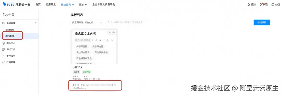 e. 返回模板列表,复制模板 ID,用于创建钉钉连接流使用。