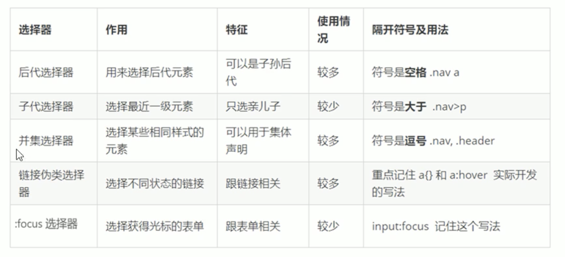 焦点就是光标,一般情况<input>类表单元素才能获取,因此这个选择器业主要针对于表单元素来说