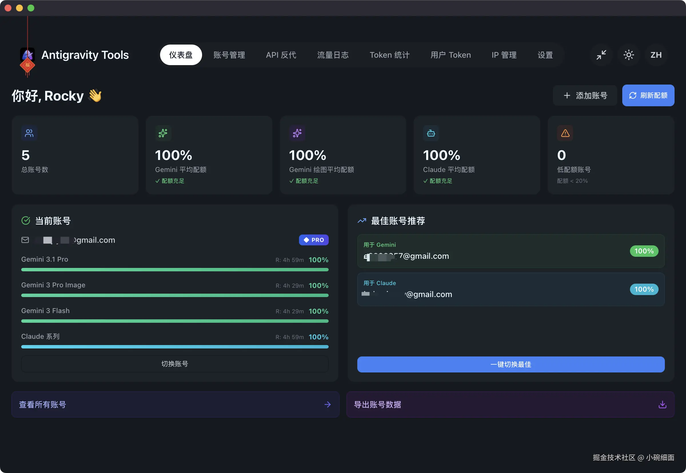 - 自动切换: 当当前账号配额耗尽时,自动切换到下一个可用账号
