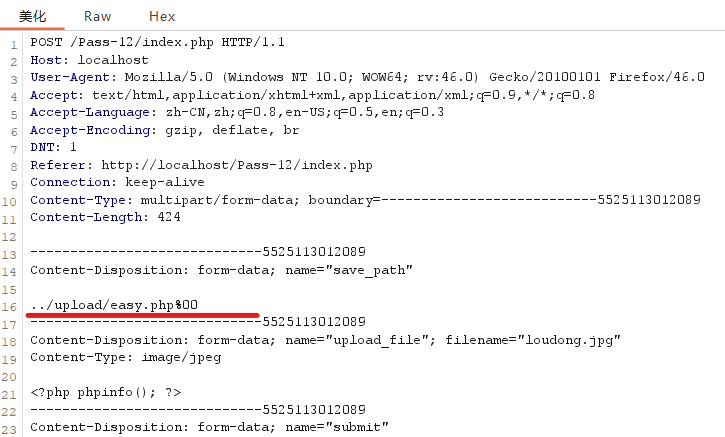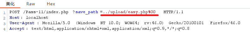 将save_path 修改为**../upload/easy.php%00** ,在拼接步骤时会拼接为easy.php%00loudong.jpg