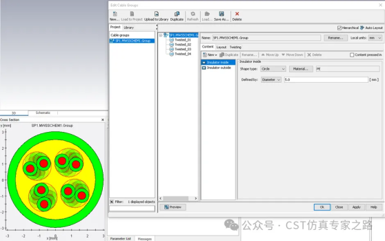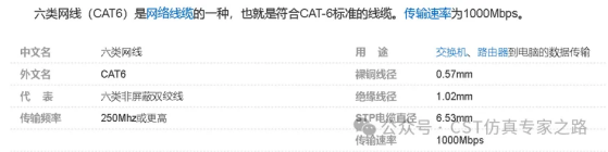 根据网上查到的CAT6网线规格,在cable工作室中输入铜线直径、绝缘层厚度、线缆直径等参数,完成以太网线的建模。