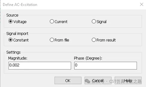 创建Simulation task,可以选择Trans或者AC。Trans的激励源是时域信号,可以导入实测的共模信号波形,或者对某一固定频率信号(例如125M、250M等)做精确的RE量化评估;AC的激励源是频域信号,适合于分析整个系统的谐振情况。