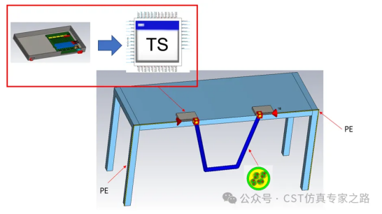 以太网口RE仿真属于系统级仿真,在建模时需要考虑复杂的PCB、结构、cable、测试场地、电场接收探针等关键因素。为了解决系统级EMC仿真难题,从2023版本开始,CST推出了3D combined功能,可以把3D模型和cable模型放在一起计算S参数,然后在电路中进行combine。这种方法完美的解决了长激励信号仿真慢的问题,非常适合系统级EMC仿真,进一步提升了CST的EMC仿真优势。