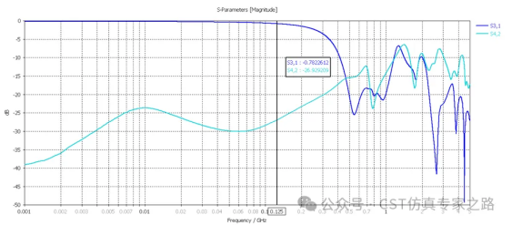 通过仿真我们可以看到网口隔离变压器在125M的差模插损是-0.78dB,共模插损是-26.9dB。