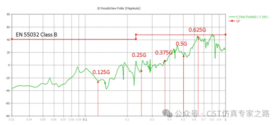 以千兆网口为例,时钟频率是125MHz,通常RE超标的频点是125MHz及其倍频(250M、375M、500M等),因此在这些频点上如果出现谐振,是非常容易导致RE测试fail。导致出现谐振的原因主要是PCB、结构和cable,感兴趣的小伙伴还可以修改模型的尺寸,观察谐振点的变化,对于我们学习RE辐射机理是非常有帮助的。
