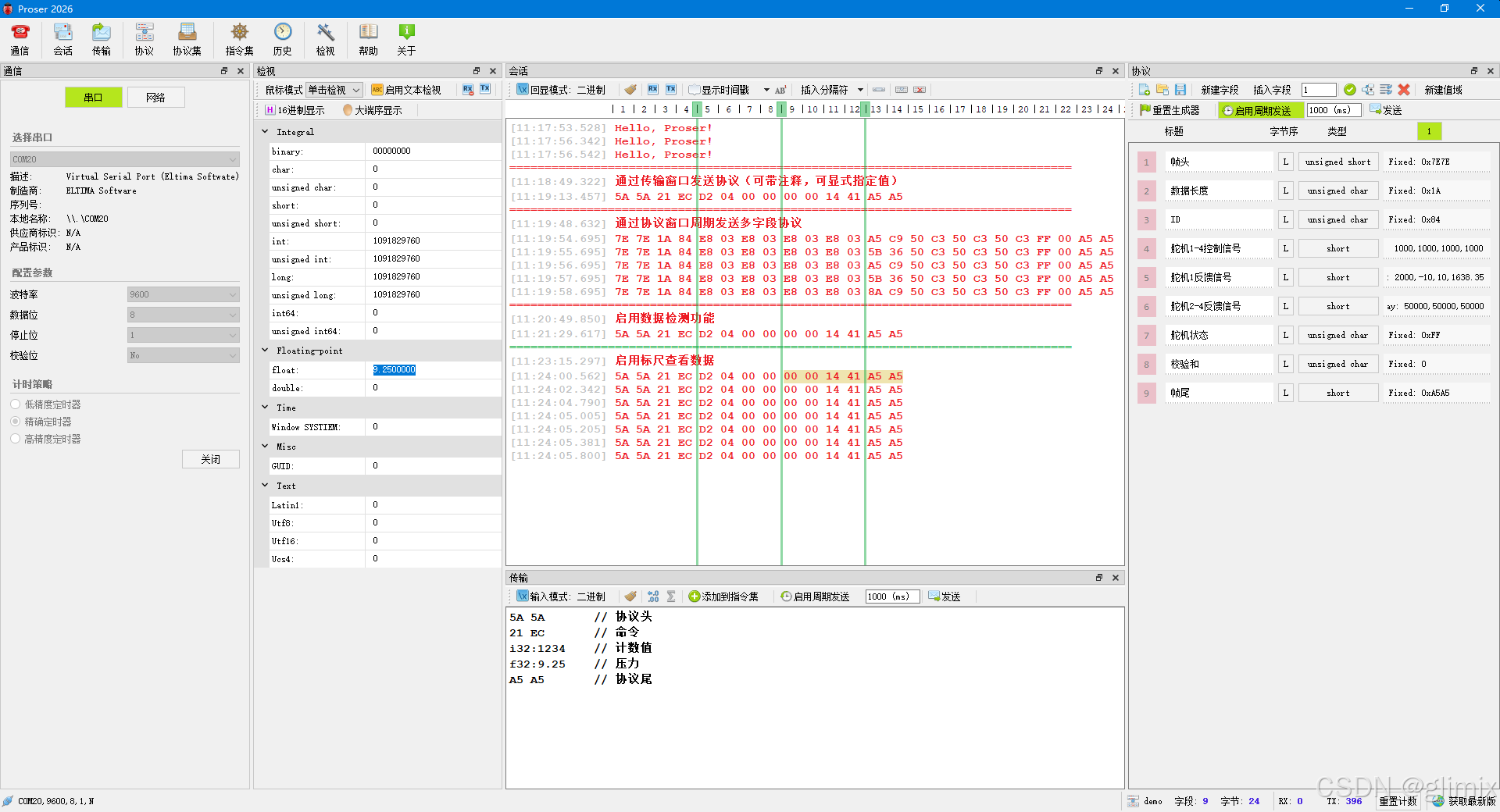 Proser 是一款支持串口与网络的通信调试助手,其独有的协议编辑器、数据检视、标尺等功能,让指令模拟与数据分析更加易用。