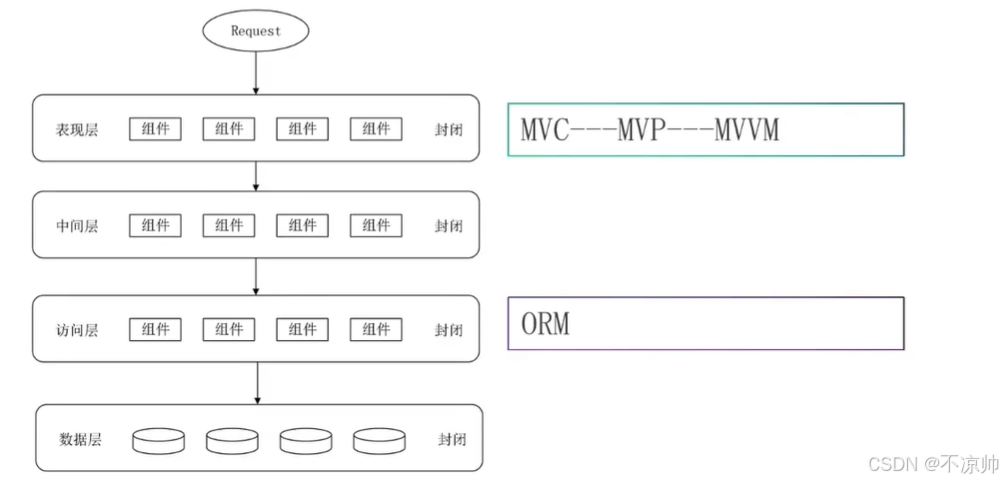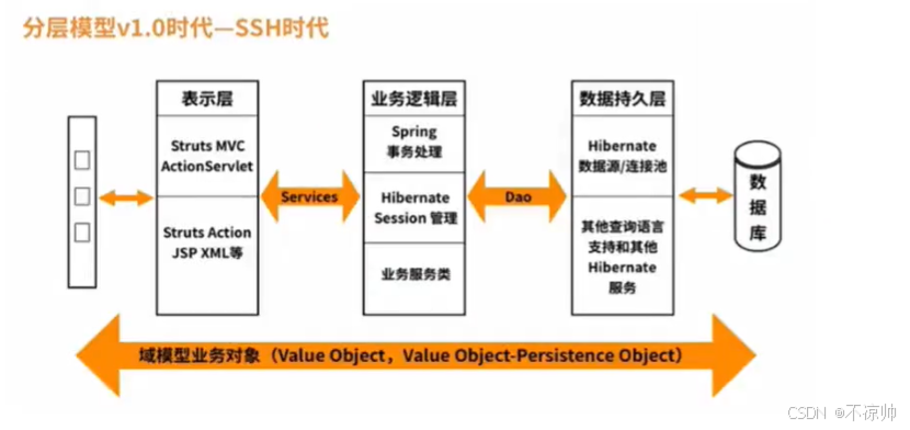 ● Model 模型层:指应用逻辑实现及数据持久化的部分。如 Struts+Spring+Hibernate(SSH)、JSP+Spring+Hibernate 等都是面向 MVC 架构的。