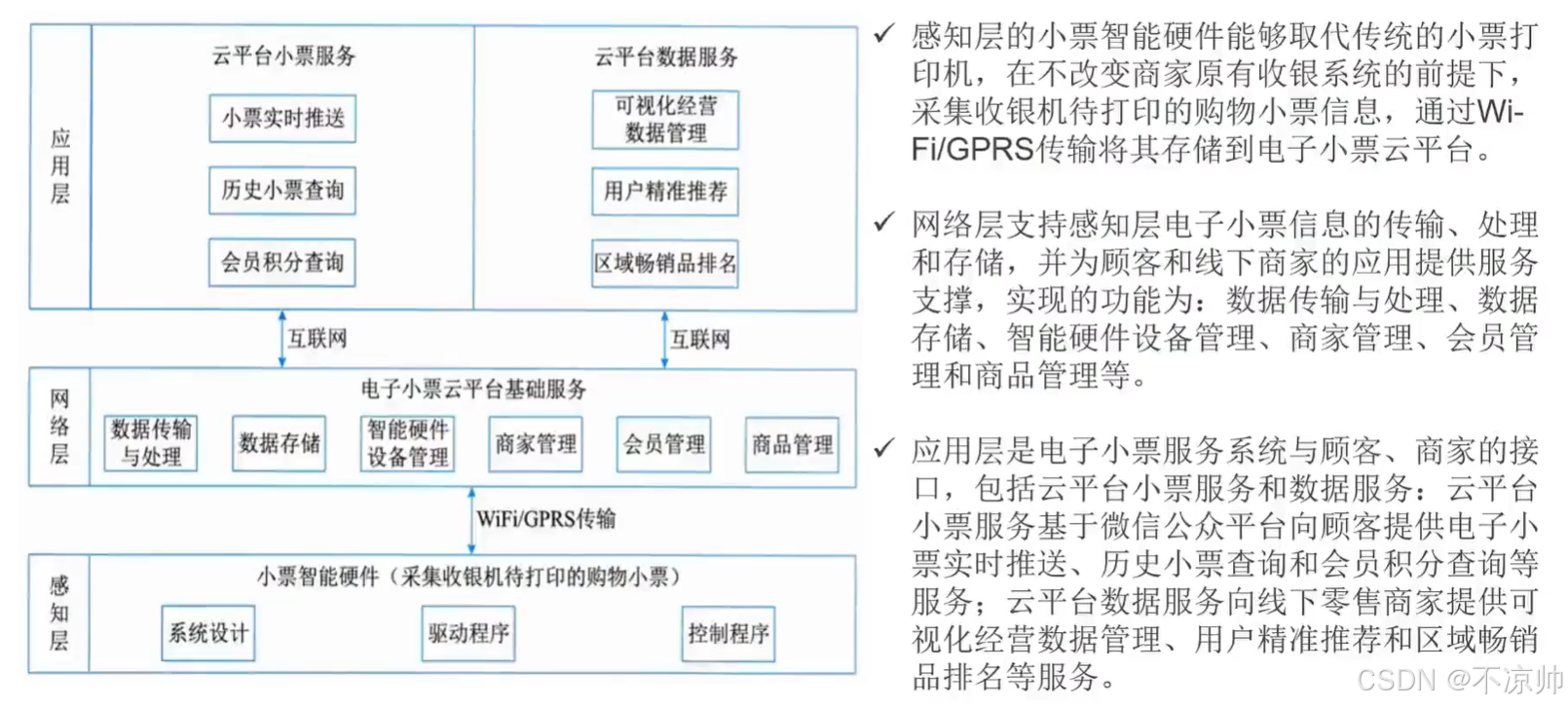 (4)应用层:云平台上的信息处理,包括数据处理与管理、数据与行业应用相结合,如定制业务、协同业务、产品服务。