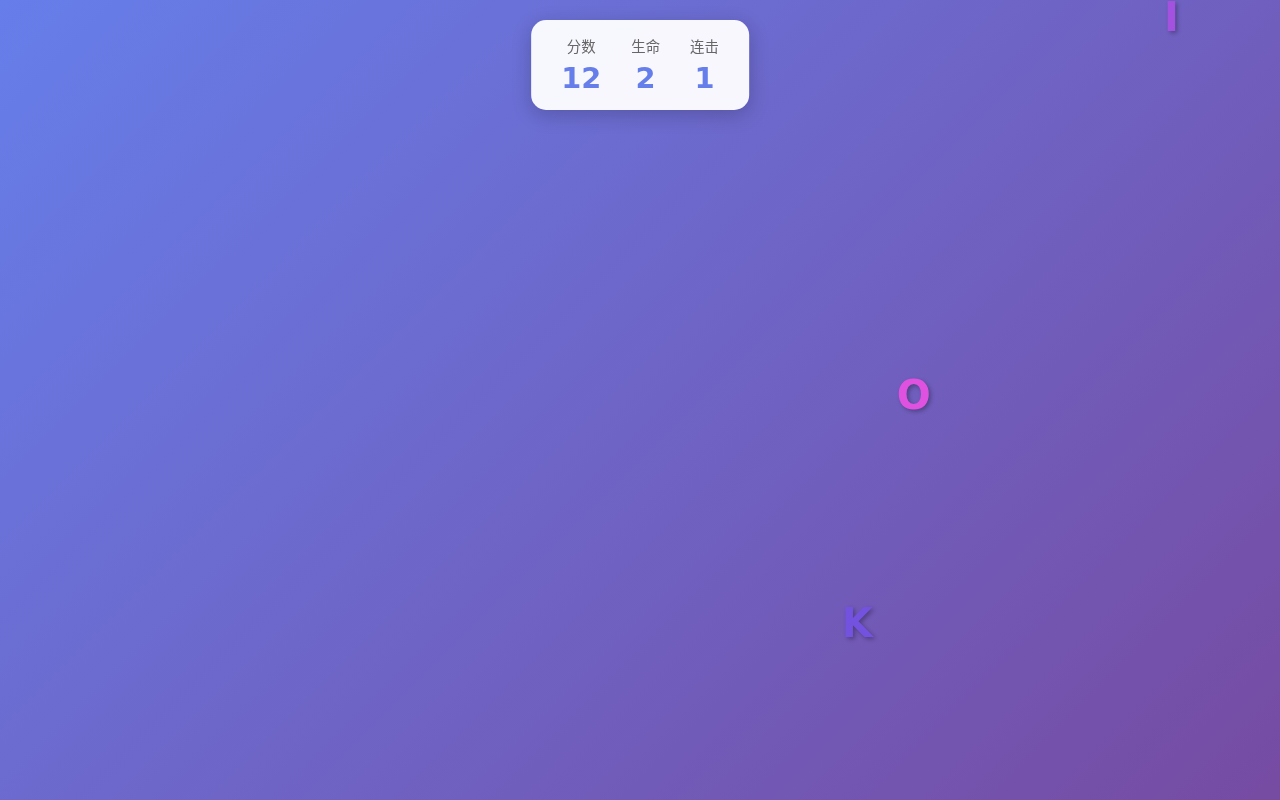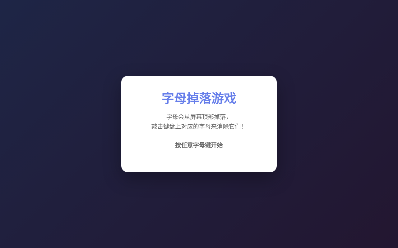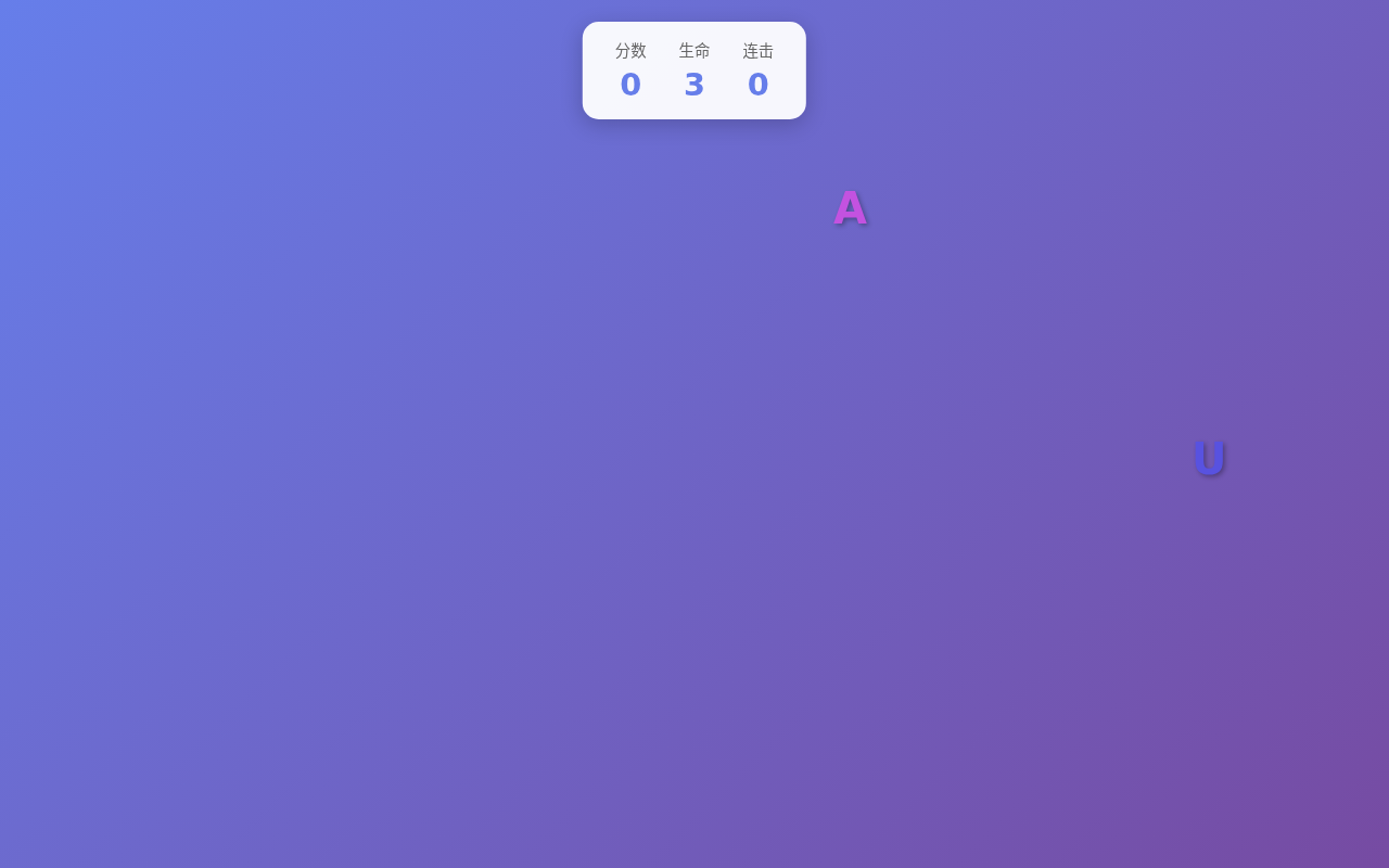 | 字母掉落 | 从顶部随机位置以不同速度掉落 |