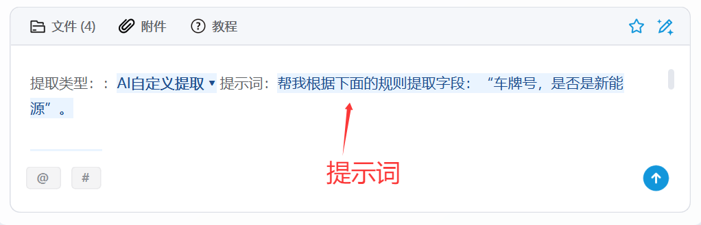 然后下拉选中 "AI自定义提取" , 输入自己的提示词。