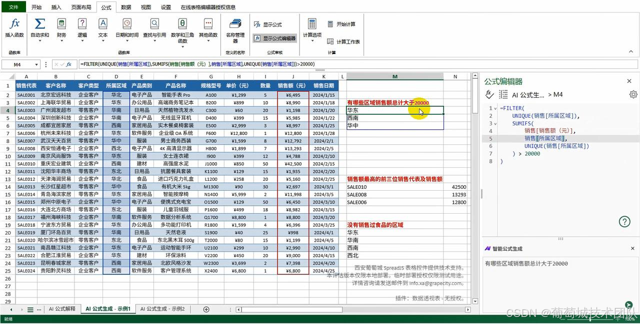 在复杂的报表系统中,普通用户往往记不住复杂的嵌套函数。通过 SpreadJS AI 插件,开发者可以实现"语言驱动计算":