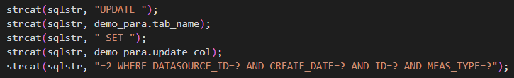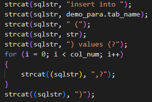 插入和更新操作的实现需要编辑OciLoadData.c中的内容,完整代码就不放出来了,太多了,关键的是我们实际需要执行的SQL语句,在程序中体现如下: