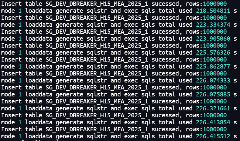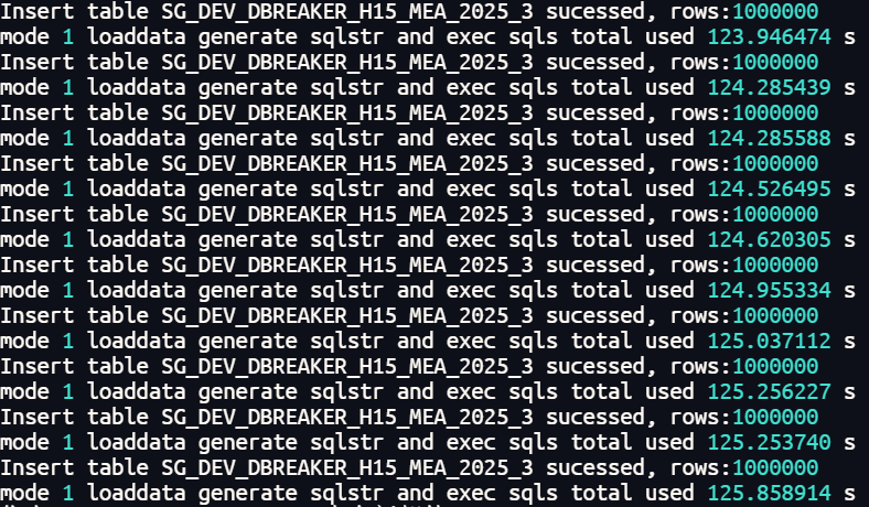 准备工作就绪后,我们正式进入测试环节。通过分别在不分区 、一级分区 和二级分区 三种表结构上执行 paralle_load.sh 脚本,我们收集到了以下关键性能数据: