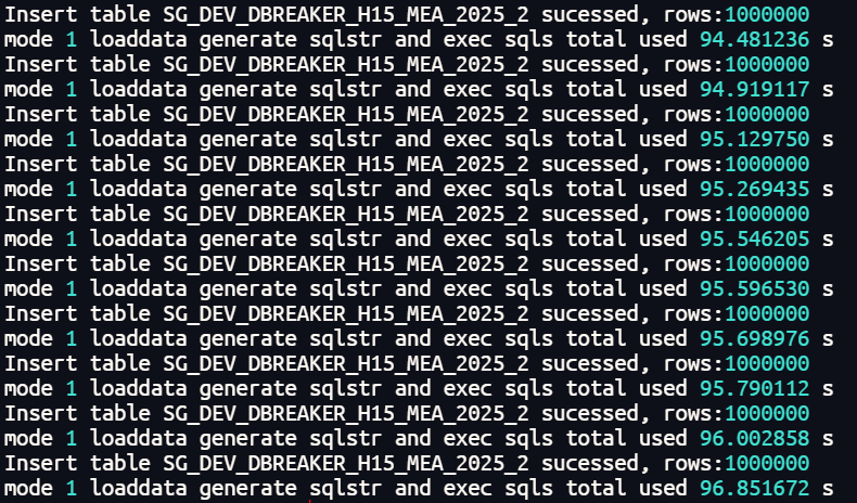 本次测试的数据集规模为 1000 万条记录,由 SQLark 工具生成。为模拟高并发写入场景并提升数据加载效率,我们使用 DTS 工具将数据拆分为 10 个独立的 TXT 文件,每个文件承载 100 万条数据,以便后续通过脚本进行并行读取与插入操作。