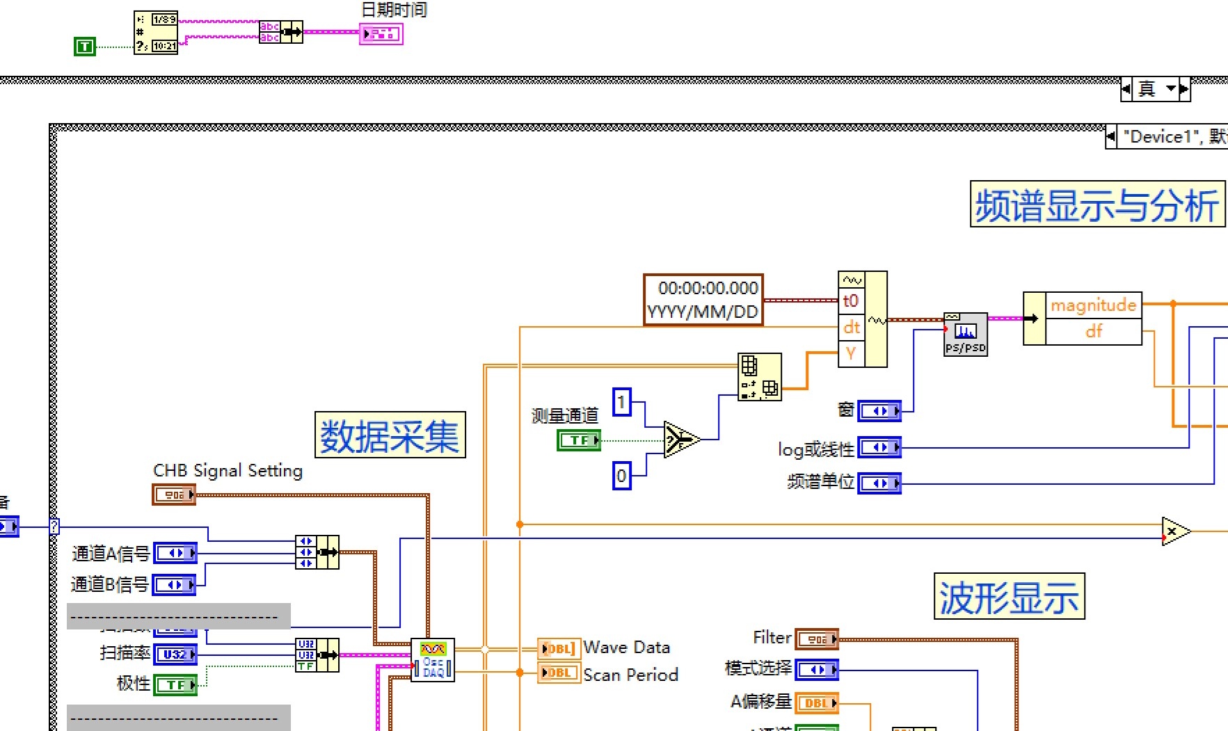 - 在 LabVIEW 中:你需要创建多个 while 循环、使用局部变量传递参数、处理错误簇、编写状态机......