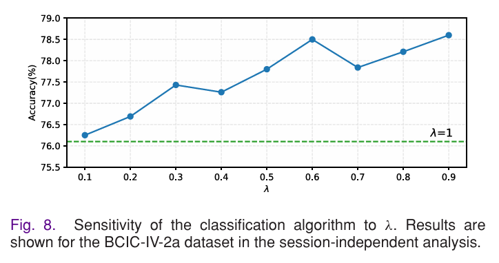 - 层数 L=2 为最优:L=2 时模型在 BCIC-IV-2a 上精度达 78.50%,L 增至 3 时,参数过多导致过拟合,精度下降;在Subject-Independent实验分析中,为进一步提升泛化能力,将 L 调至 1,配合 dropout 率调整,有效避免了过拟合。
