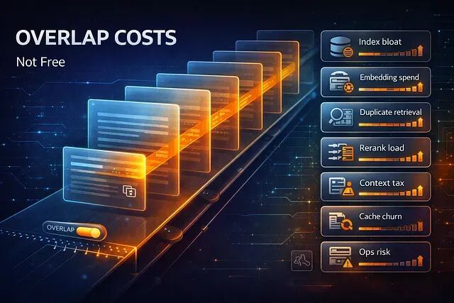 分块重叠确实能拉高召回率。但它不是免费升级而是一笔到处冒头的经常性支出:Embedding 费用、索引体积、检索多样性、重排序算力、上下文 Token 消耗、缓存失效、评估可比性、运维稳定性,每一项都会被它影响。