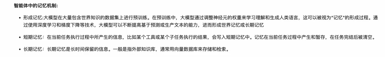Long-term memory:持久化的长期记忆