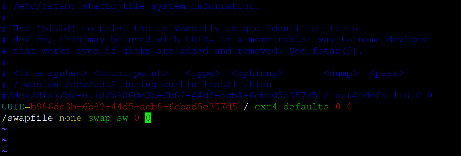 sudo vim /etc/fstab