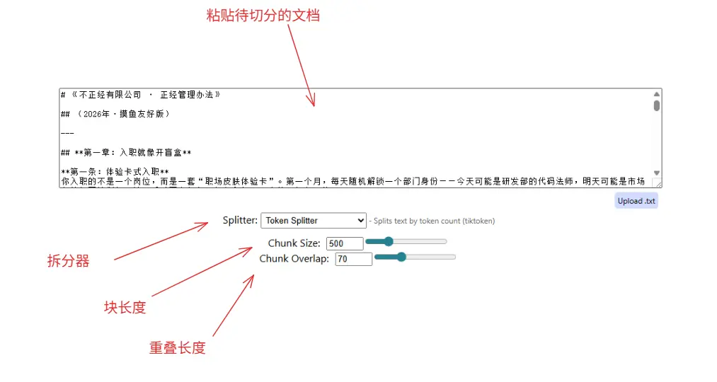 这张图里,因为我们采用了"Token Splitter",因此基本就是按 ChunkSize = 500分出了三个文本片段。