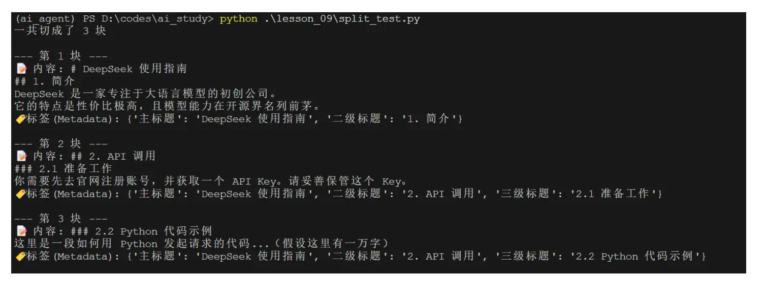 可能你注意到了,除了生成切片之外,Markdown Splitter还生成了metadata。