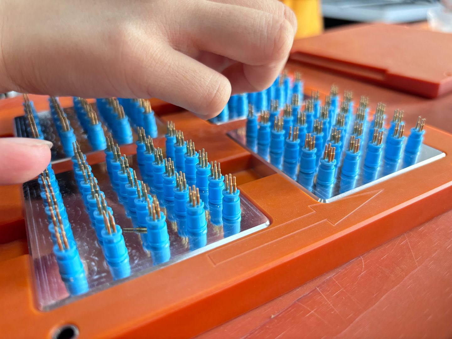 定位校准:承载PIN针的治具板与承载胶芯的治具板通过精密导柱进行预对位,使两者中心坐标重合,对位偏差控制在0.03mm以内。