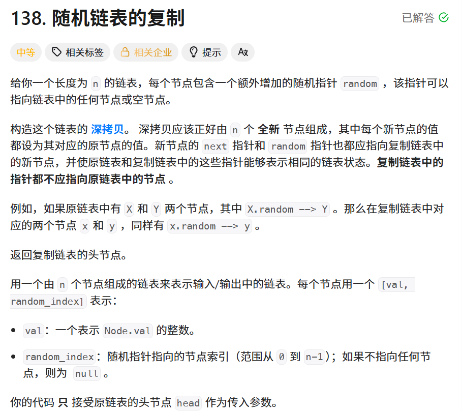 | 思路1 | 原地复制 + 拆分法 | O(n)O(n) | O(1)O(1) | 三步操作,空间最优,推荐使用 ✅ |