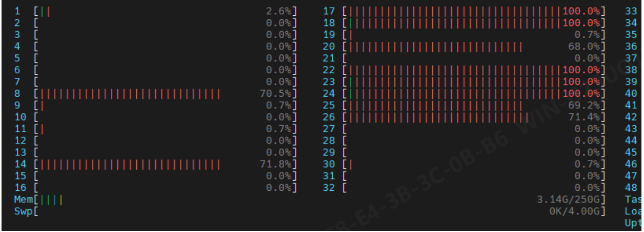 N20作为server端,接收数据,如果要稳定在90GB/s以上至少需要6个核,5个核的时候运行一段时间CPU占用率会跑到100%,导致后面速率下降。