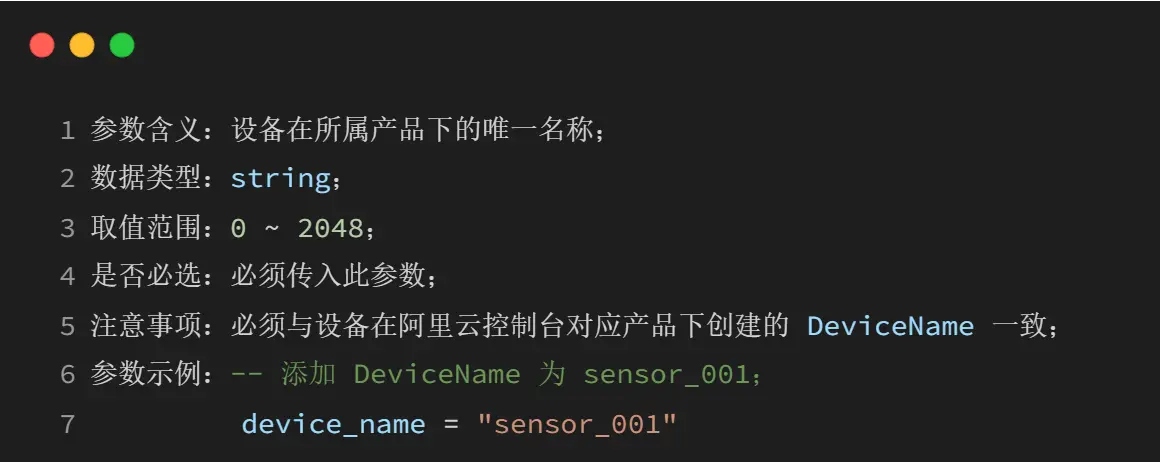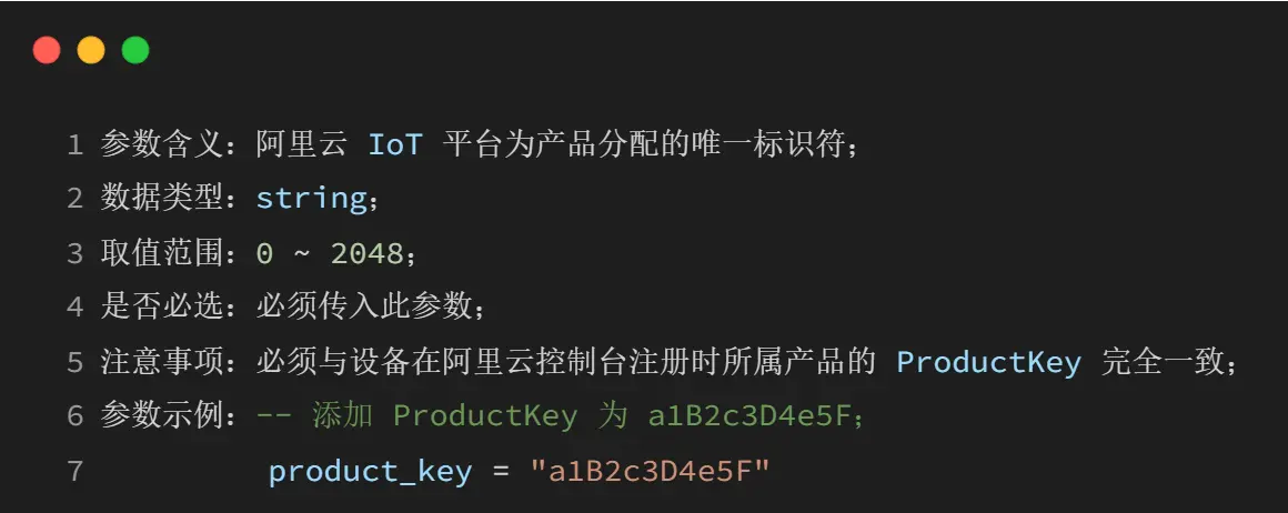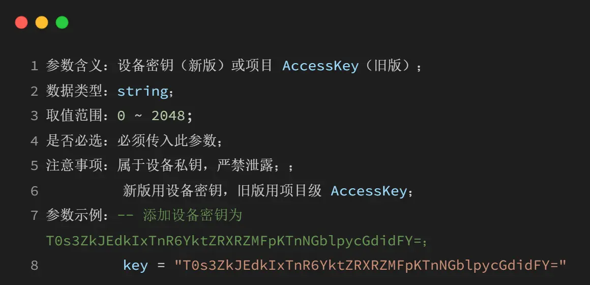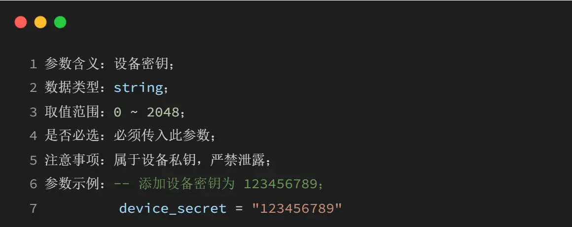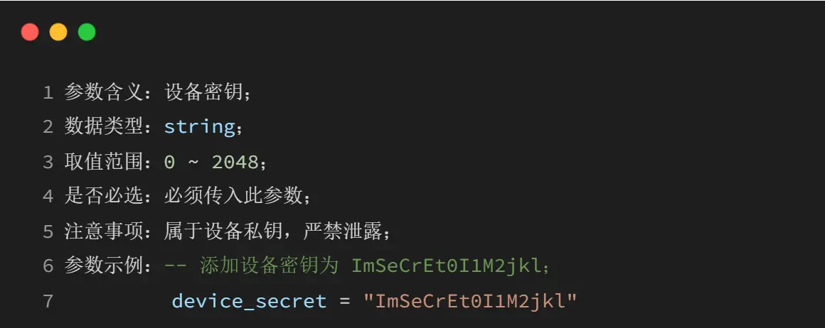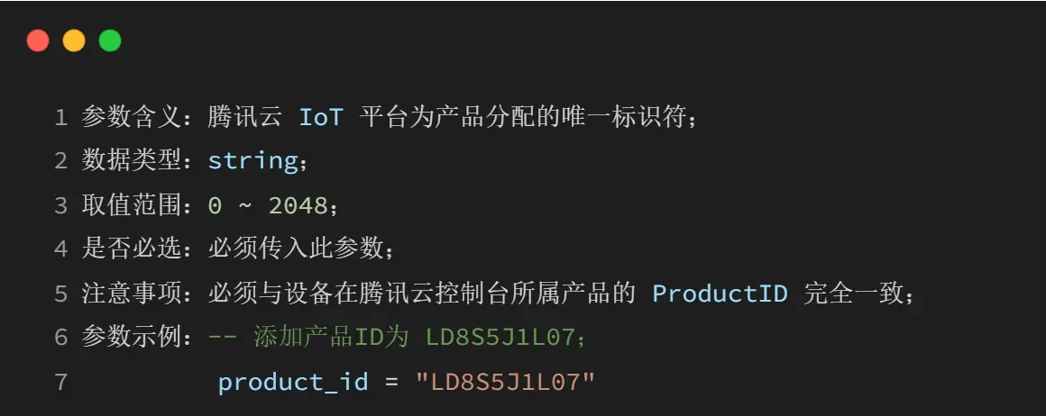 - 腾讯云使用 product_id + device_name 唯一标识设备,device_secret 用于动态签名;