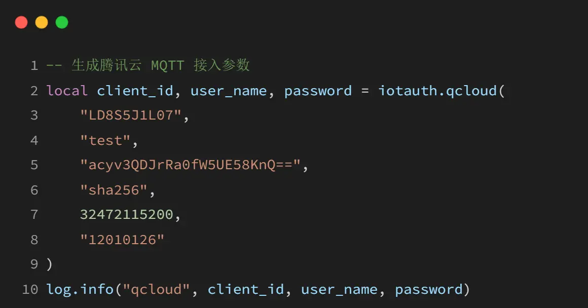 local client_id, user_name, password = iotauth.qcloud(product_id, device_name,device_secret,method,cur_timestamp,sdk_appid)