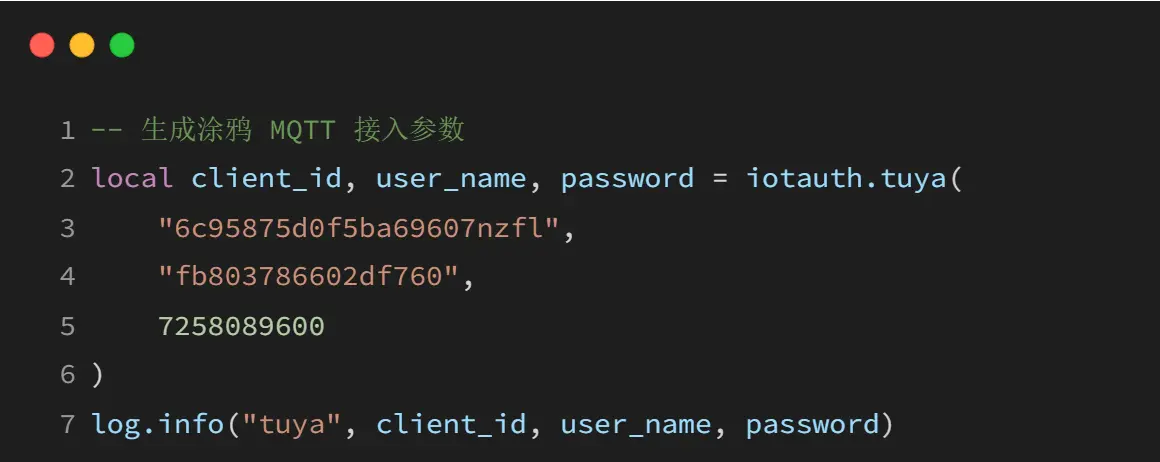 local client_id, user_name, password = iotauth.tuya(device_id,device_secret,cur_timestamp)
