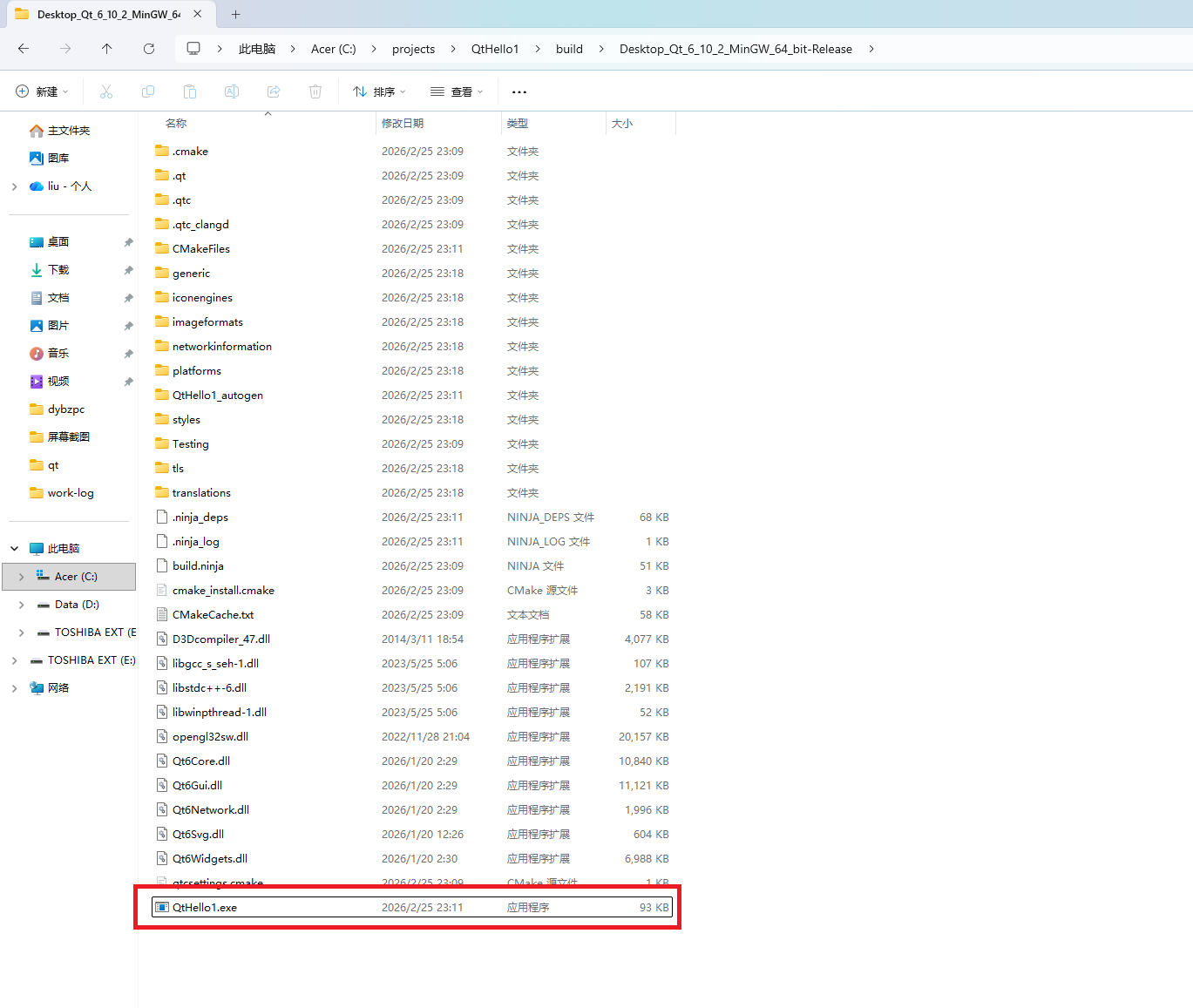 C:\projects\QtHello1\build\Desktop_Qt_6_10_2_MinGW_64_bit-Release