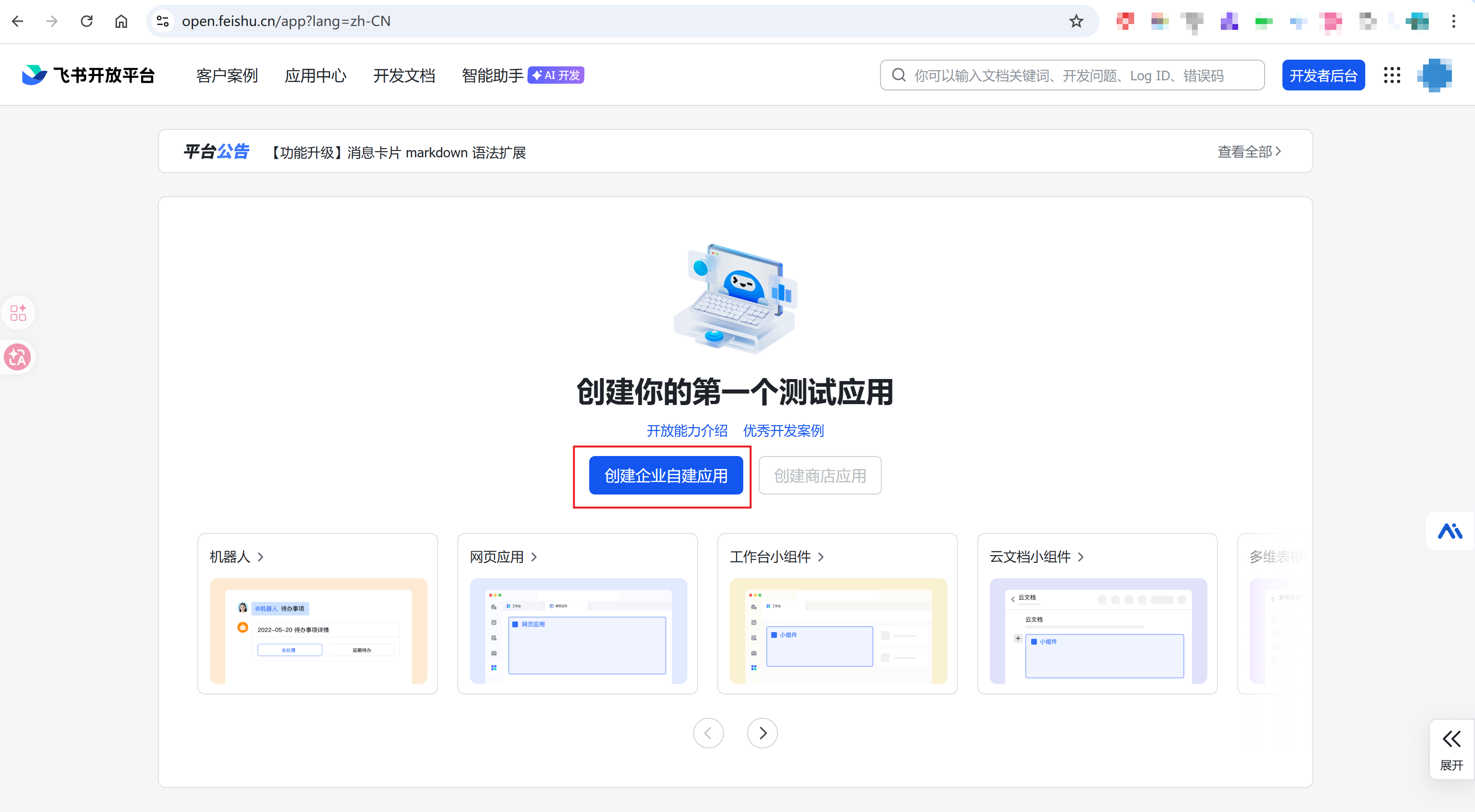飞书开放平台https://open.feishu.cn/app