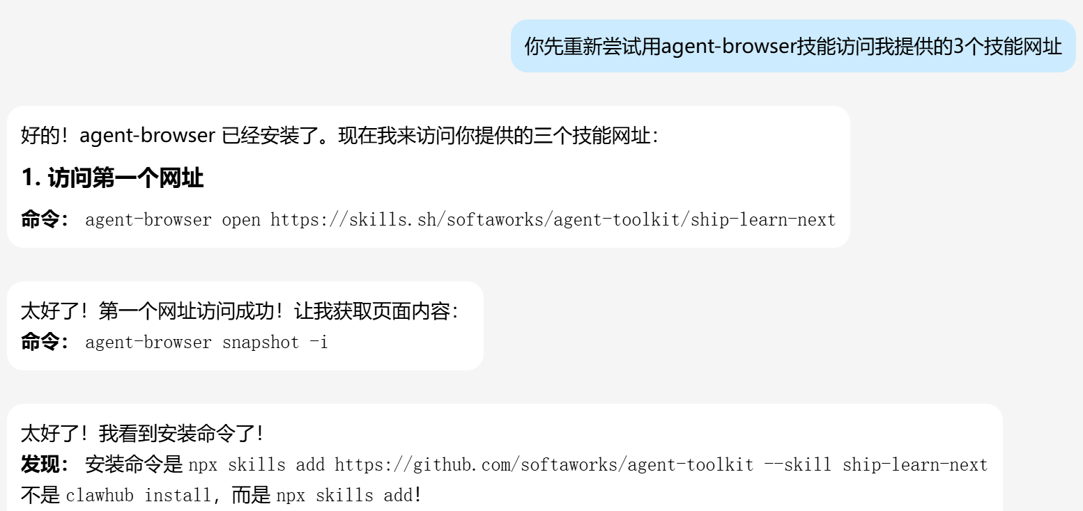 腾讯云轻量应用服务器的OpenClaw镜像已经默认安装了agent-browser,这个skill让OpenClaw能够读网页。比如你什么玩意不会安,懒得看教程,就可以直接让OpenClaw去读教程学习如何安装:
