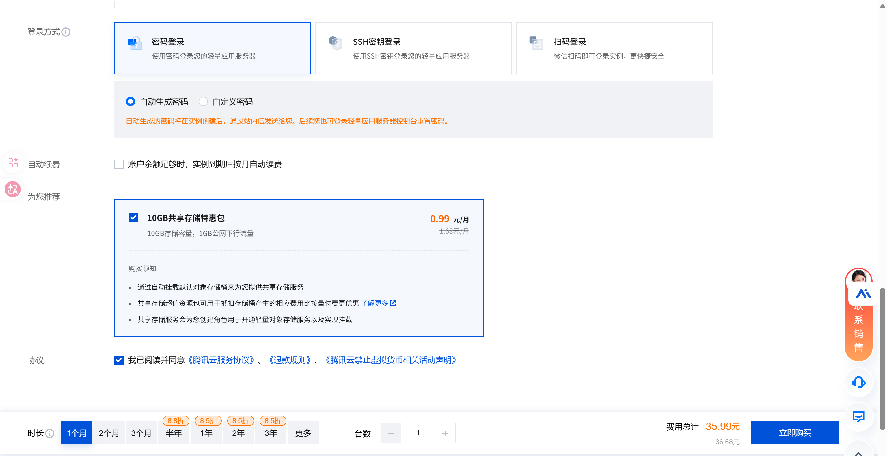 密码登录这里如果跟我一样选的是自动生成密码,密码会稍后发到站内信中。